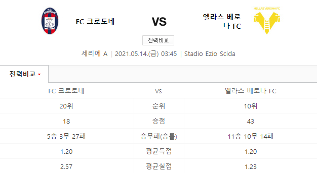 [킹콩티비] 크로토네 베로나 분석 5월14일 세리에A 스포츠중계