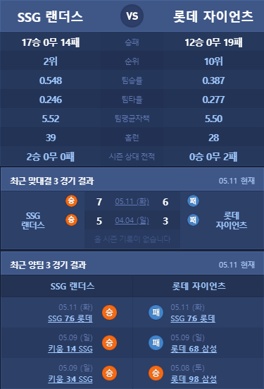 롯데 SSG 분석 5월 12일