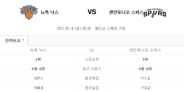 뉴욕닉스 샌안토이오 분석 5월 14일