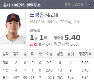 5.40을 기록하는 부진한 성적을 보이고 있기에 이번경기도 좋은 피칭을 기대하기는