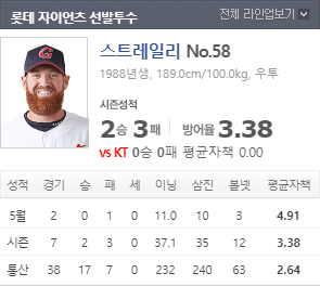 부진을 이어가고 있으며 최하위에 위치해 있다. 이번 경기에서 스트레일리가 선발 등판할 예정