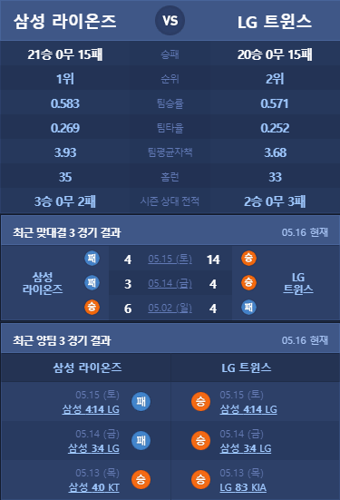 삼성 라이온즈는 현재 리그 1위에 위치해 있으며 이전 경기에서 14:4로 대패를 가져오며 2연패의