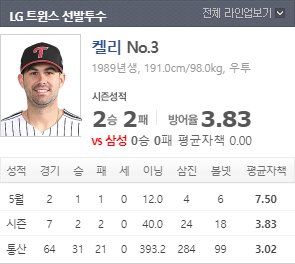 켈리가 유독 삼성을 상대로 고전하는 모습을 보이고 있어 부담감이 적지 않을 것으로 보인다. 하지만