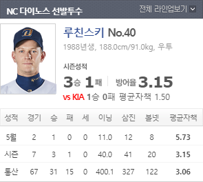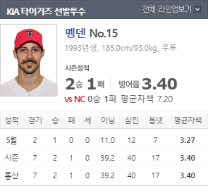 올 시즌 2승 1패 39이닝 40삼진 평균자책 3.40으로 안정적인 피칭을 보이고 있어 긍정적이다.