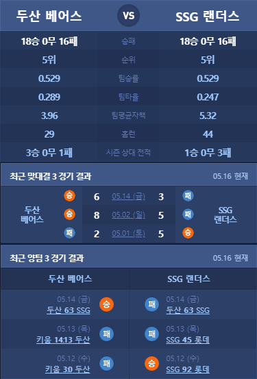 SSG 두산 분석 5월 17일