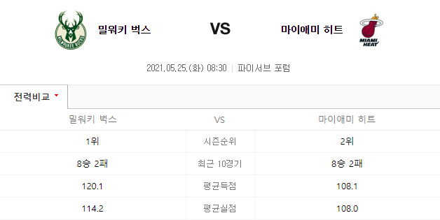밀워키 벅스 VS 마이애미 히트