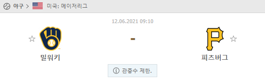 밀워키 브루어스 VS 피츠버그 파이리츠