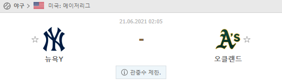 뉴욕양키스 오클랜드 스포츠중계