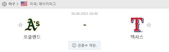 오클랜드 어슬레틱스 VS 텍사스 레인저스