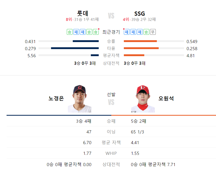 에 빠져 있다. 이번 선발로 나서는 오원석 선수는 이번시즌 4.41의 방어율을 보이는 다소
