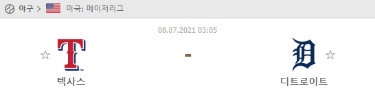 텍사스 레인저스 VS 디트로이트 타이거즈