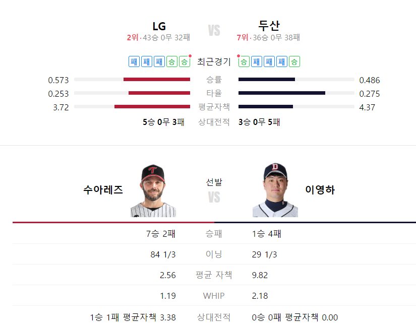 두산 LG 야구분석