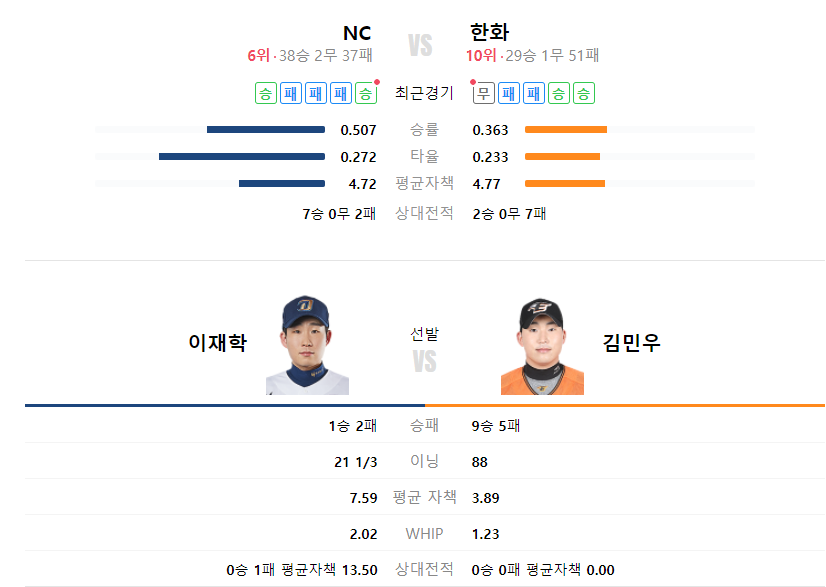 하지만 이번 상대 선발의 이번시즌 활약이 부진해 무난한 공략이 가능해보여 준수한 득