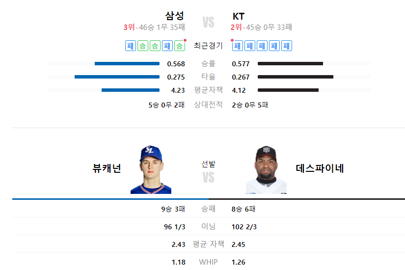 [킹콩티비] KT위즈 삼성라이온즈 분석 8월13일 KBO한국야구 스포츠중계