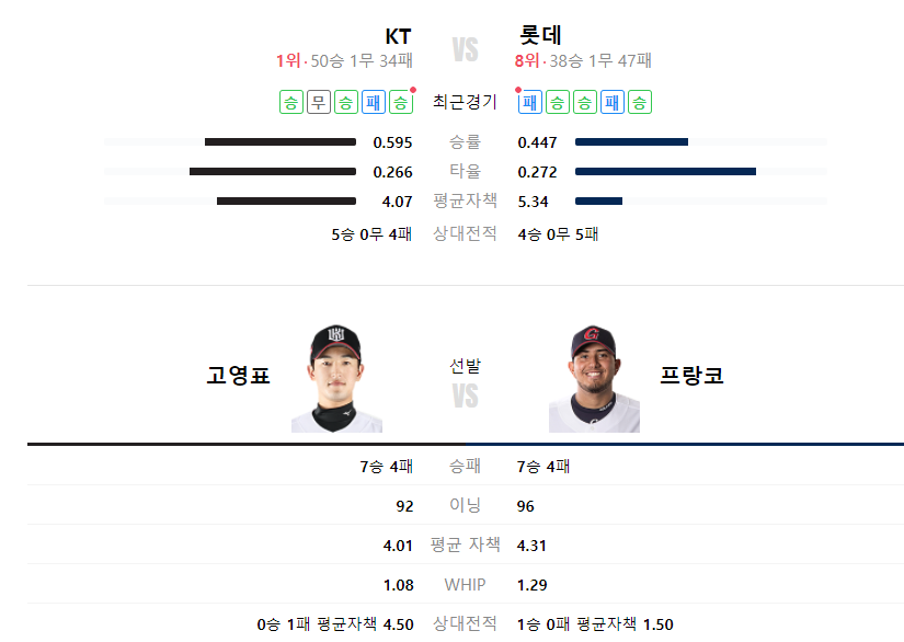 롯데자이언츠 KT위즈 야구분석