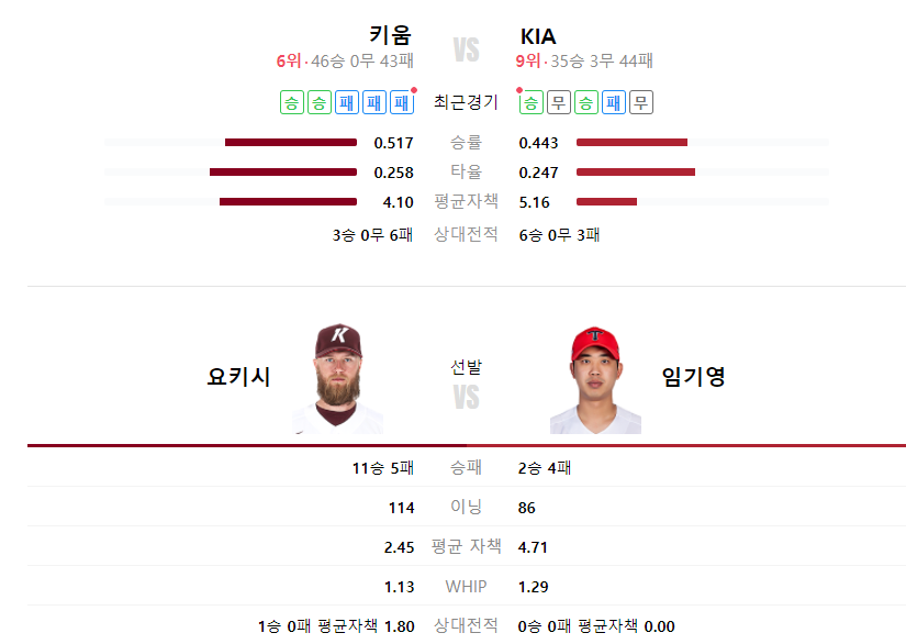 무난한 득점을 올릴수 있을것으로 기대된다. 하지만 이번 상대 선발의 이번 시즌 성적이