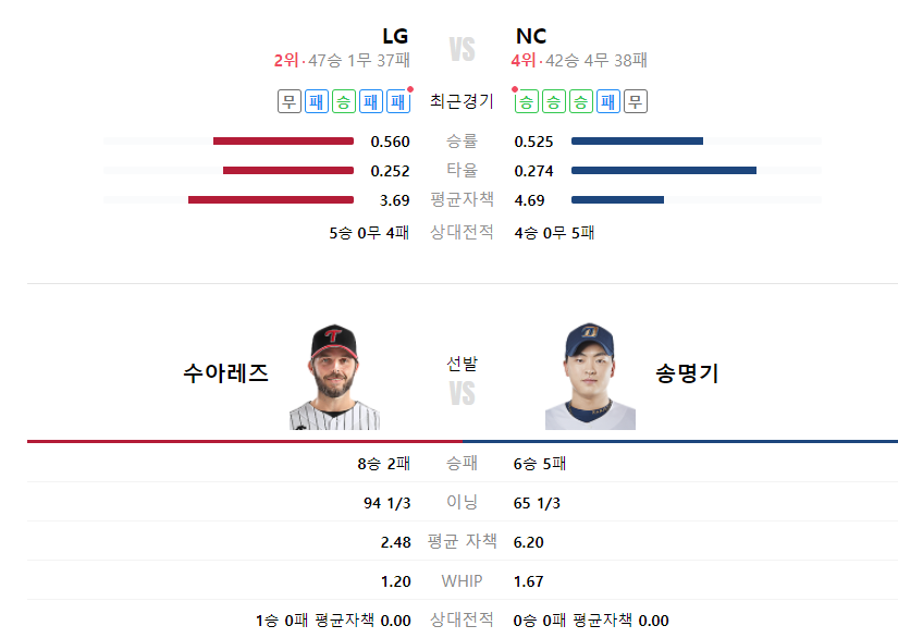 NC다이노스 LG트윈스 야구분석