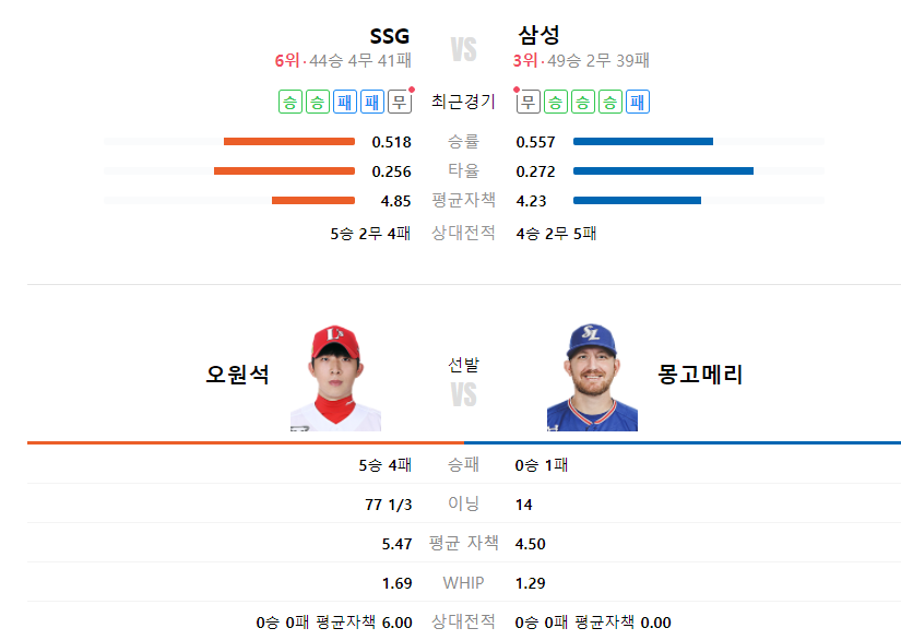 삼성라이온즈 SSG랜더스 야구분석