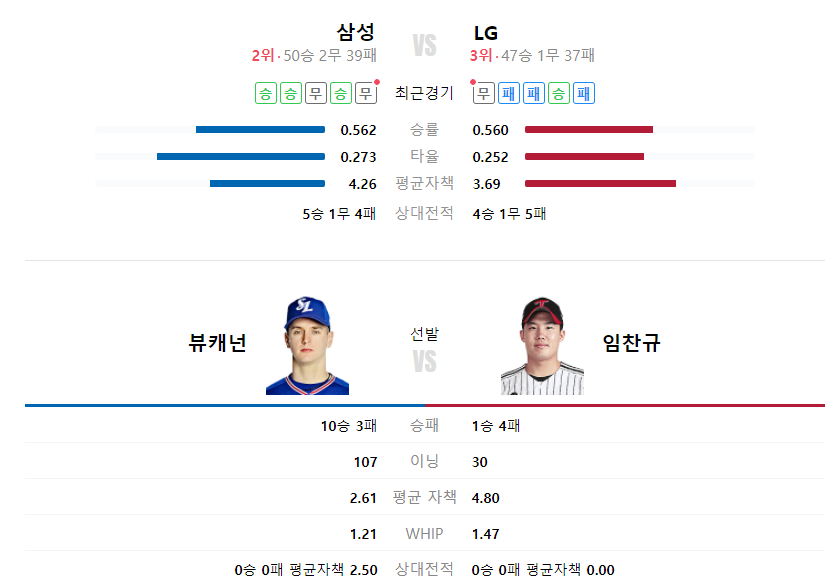 LG트윈스 삼성라이온즈 야구분석