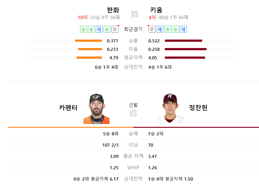키움히어로즈 한화이글스 야구분석