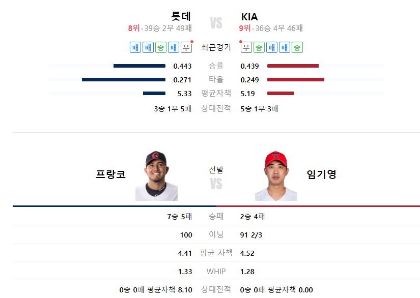 KIA타이거즈 롯데자이언츠 야구분석