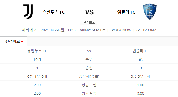 [킹콩티비] 유벤투스 엠폴리 분석 8월29일 세리에A 스포츠중계