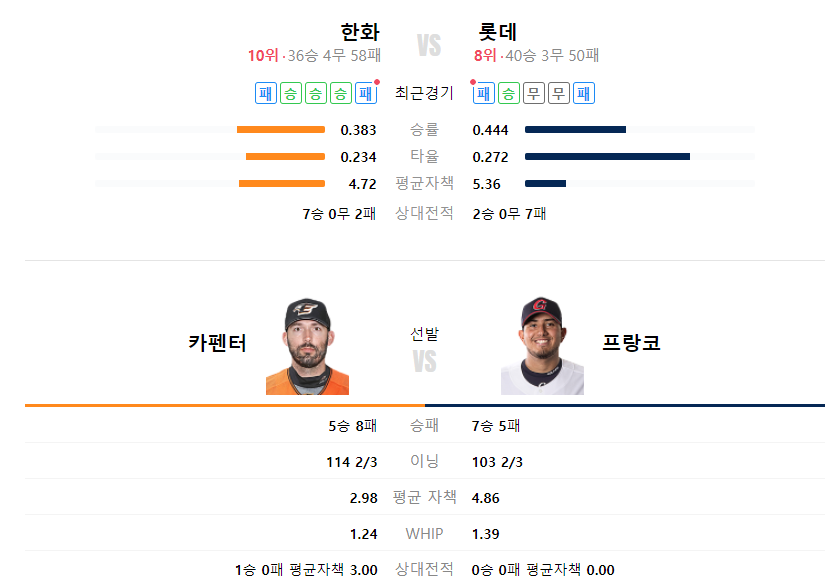 나서는 프랑코 선수는 이번시즌 20경기 등판해 103.2이닝 97피안타 56자책점 평균자책
