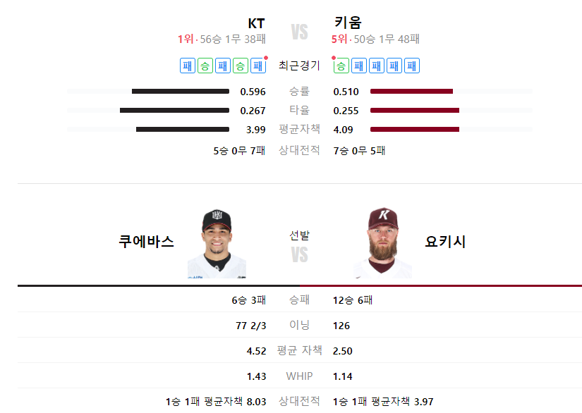 키움히어로즈 KT위즈 야구분석