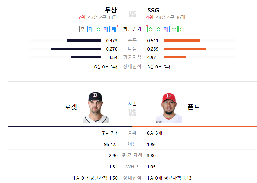 SSG랜더스 두산베어스 야구분석