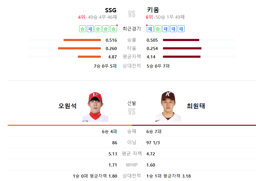 키움히어로즈 SSG랜더스 야구분석