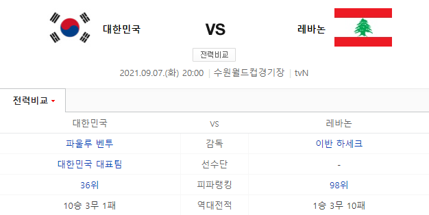 [킹콩티비] 대한민국 레바논 분석 9월7일 월드컵예선 스포츠중계