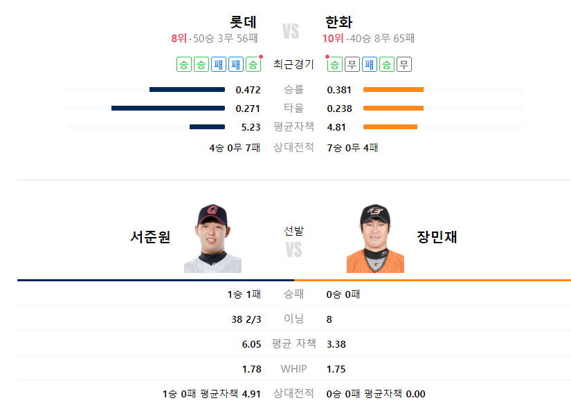 직전 키움전에서 대승을 거두며 그 이전 무승부의 아쉬움을 달랜 한화는 이번경기 선발로 장