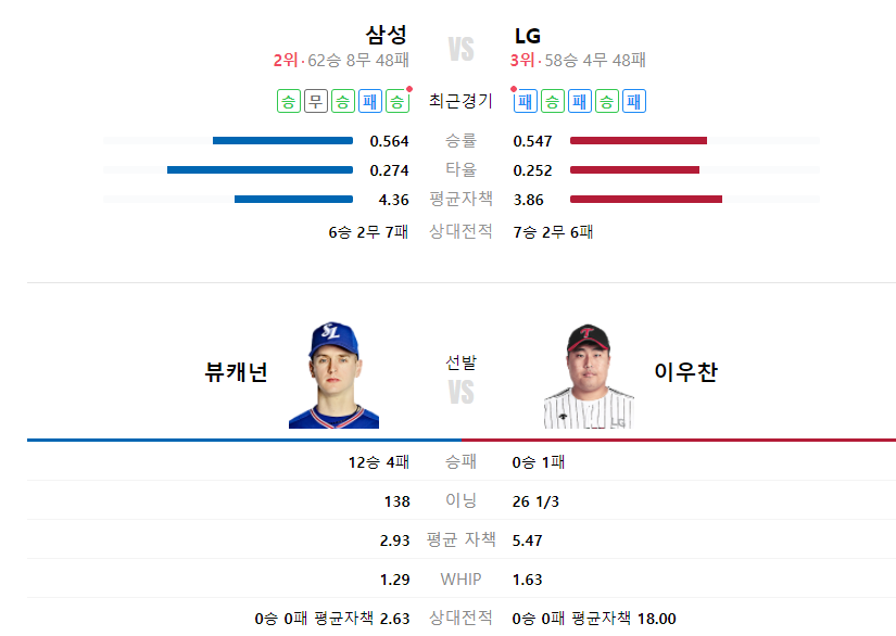 LG트윈스 삼성라이온즈 야구분석