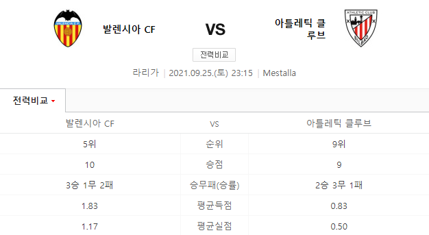 발렌시아는 현재 리그 5위에 위치하고 있으며 지난 경기에서 3:1로 패배를 기록했다. 최근 세비야와