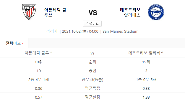 [킹콩티비] 빌바오 알라베스 분석 10월2일 라리가 스포츠중계