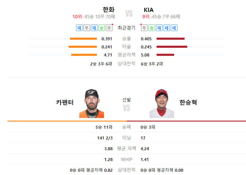 KIA타이거즈 한화이글스 야구분석