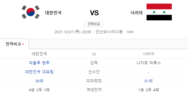 [킹콩티비] 대한민국 시리아 분석 10월7일 월드컵예선 스포츠중계