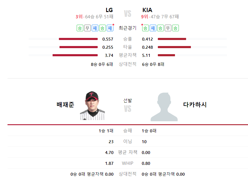 보인다. 마운드에서 좋은 방어와 타선의 준수한 활약이 기대가 되기에 승리가 예상된다.