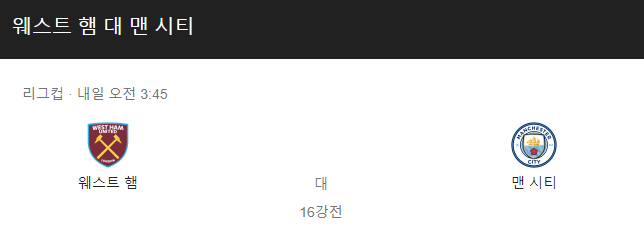 [킹콩티비] 웨스트햄 맨체스터시티 분석 10월28일 EFL컵 스포츠중계
