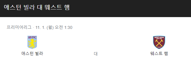 [킹콩티비] 애스턴빌라 웨스트햄 분석 11월1일 EPL 스포츠중계