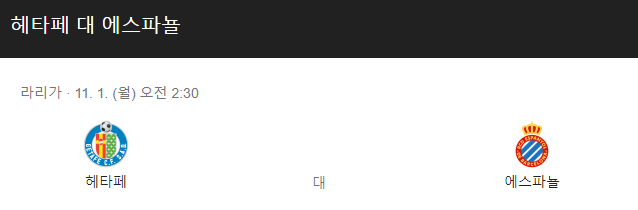 [킹콩티비] 헤타페 에스파뇰 분석 11월1일 라리가 스포츠중계