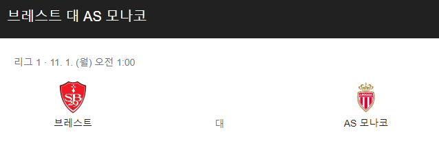 [킹콩티비] 스타드브레스트 모나코 분석 11월1일 리그앙 스포츠중계