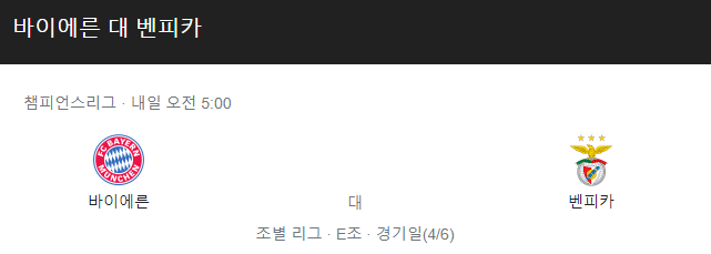 [킹콩티비] 바이에른뮌헨 벤피카 분석 11월3일 챔피언스리그 스포츠중계