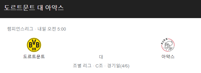 [킹콩티비] 도르트문트 아약스 분석 11월4일 챔피언스리그 스포츠중계