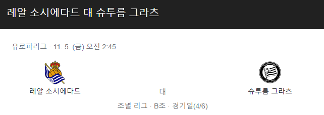 [킹콩티비] 레알소시에다드 슈투름그라츠 분석 11월5일 유로파리그 스포츠중계
