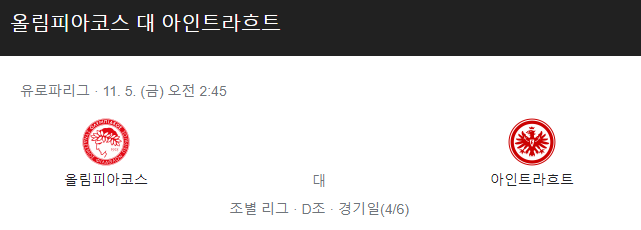 [킹콩티비] 올림피아코스 아인트라흐트 분석 11월5일 유로파리그 스포츠중계
