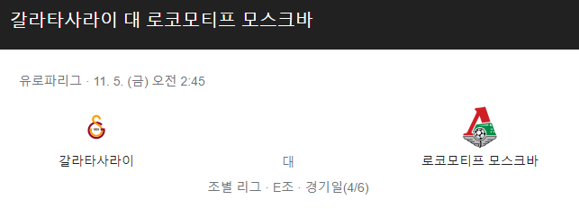 [킹콩티비] 갈라타사라이 로코모티브모스크바 분석 11월5일 유로파리그 스포츠중계