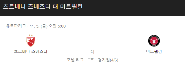 츠르베나즈베즈다 미트윌란 11월 5일