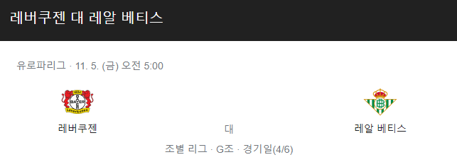 레버쿠젠 레알베티스 11월 5일