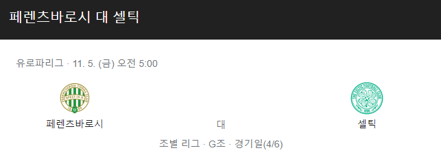 [킹콩티비] 페렌츠바로시 셀틱 분석 11월5일 유로파리그 스포츠중계